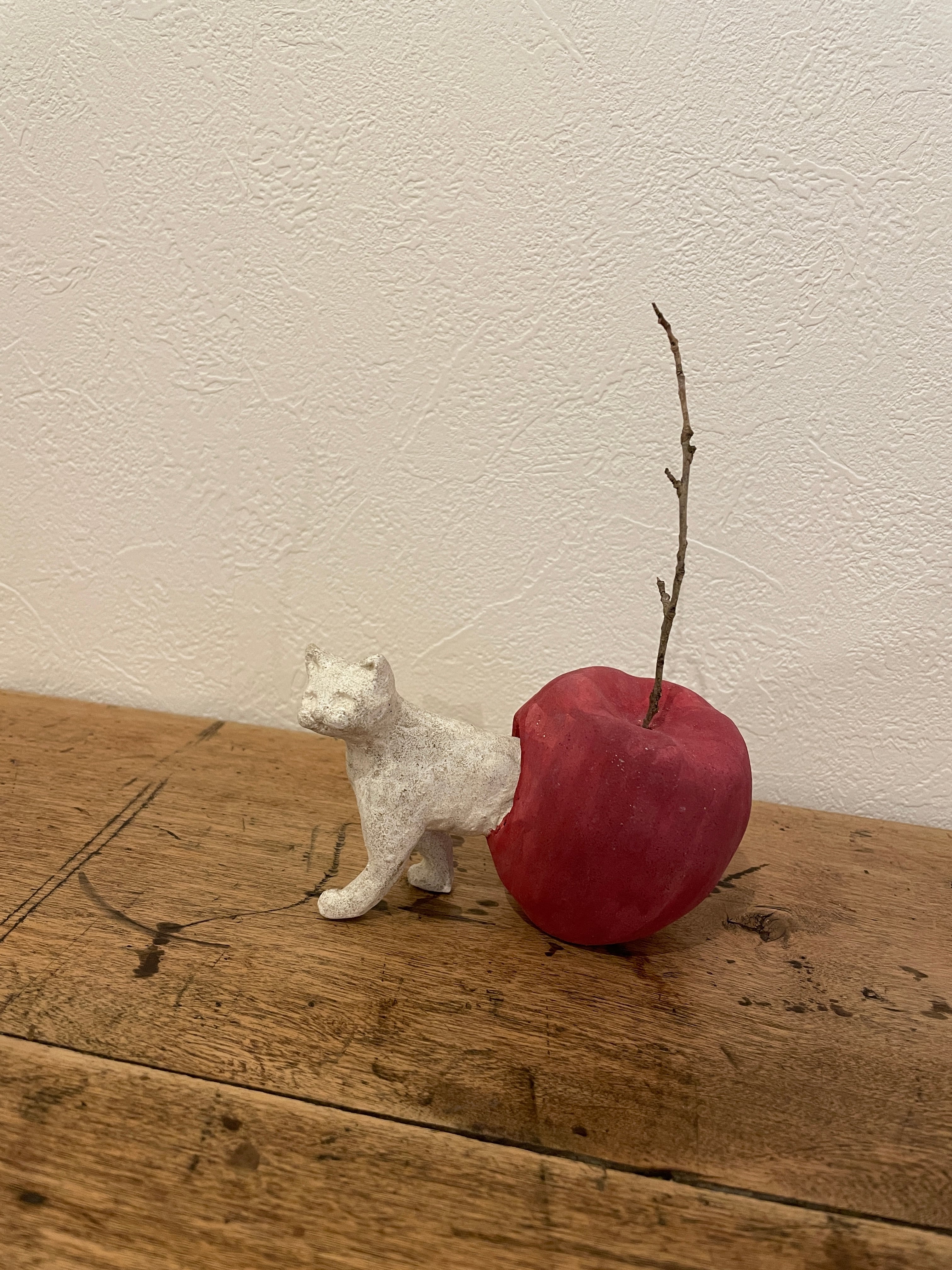 林檎から飛びている猫